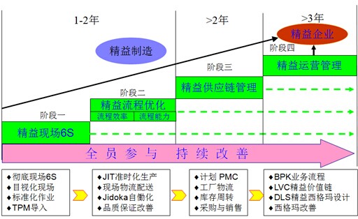 尽管本书提及的精益理念和方法与员工流失是相辅相成的关系,但并不意味着企业有必要或有能力同时实施,而策略上,精益生产的导入也是阶段性的,在不同的阶段有相应的侧重点。