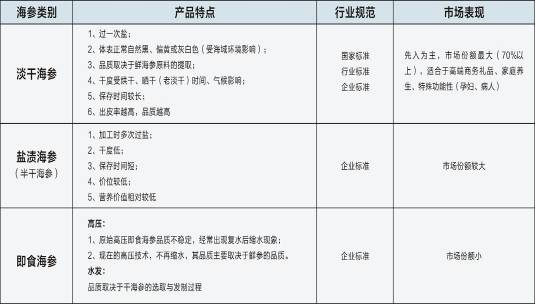 图6-3 海参的类别、产品特点、行业规范和市场表现