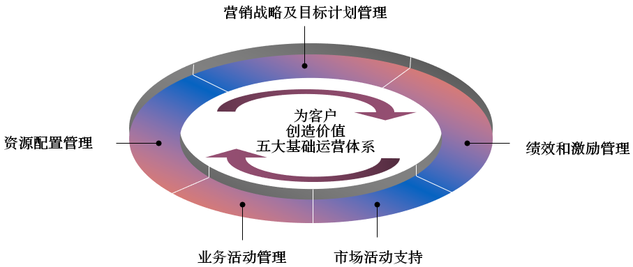 图4-3 五大基础运营体系{“营销战略及目标计划管理”删除“营销”;“绩效和激励管理”改为“绩效及激励管理”}