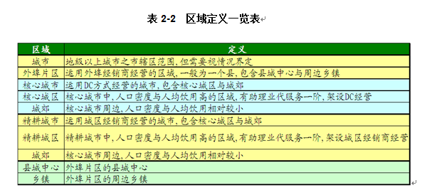 (5)经济发达的县级市或乡镇,如珠三角区域内的很多县级市与乡镇,均派助理业代定期拜访零售店。这类经济发达的县级市或乡镇也称为精耕城区。