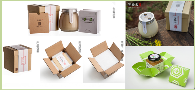 有用户反映老包装盒盖容易开胶、盒子边缘容易卡住蜂蜜罐子等细节问题,我们的设计师绞尽脑汁、废寝忘食,和打样师傅斗智斗勇,最终确定了现在令用户满意的包装(如图3-1所示)。随之就是毫不犹豫地让老包装全面下线,上千个包装弃之不用。这一切,都是为了实现让用户满意的包装。