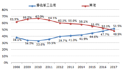 图12-9 2008-2017年中国体育品牌市场份额(单位:%)32