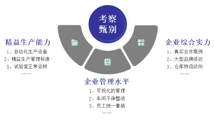 有些企业会事先准备好一本宣传册,展示企业的主打产品、与各家企业签约的合同盖章页、企业资质文件等,当然针对一些大金额的采购品类,为防止供应商作弊,考察人员会临时要求供应商调取合作时的档案合同查验真伪。