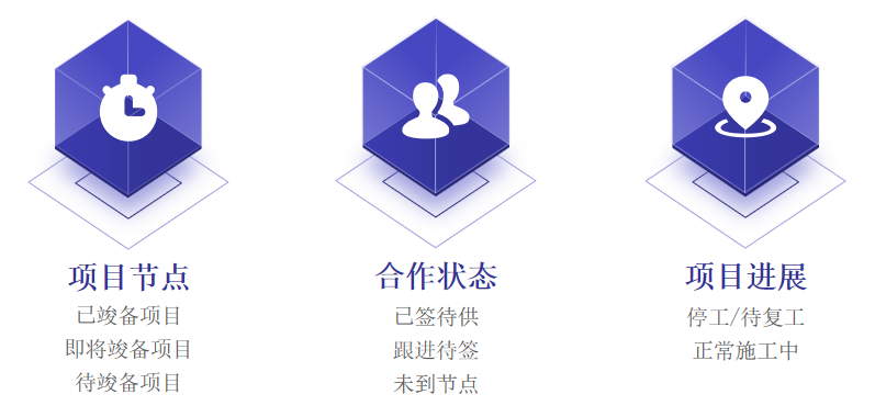 这是橱柜工厂为防止产能错配的一种主动行为,通过将所有的项目状态动态刷新,实时掌握每一个项目的竣备时间节点情况;其次了解项目供货合作状态,已签待供、跟进待签、未到节点;最后再梳理项目进展属于停工/待复工、正常施工的状态。基于上述信息,便能预测出真实的采购计划,为订单排产提前做准备。