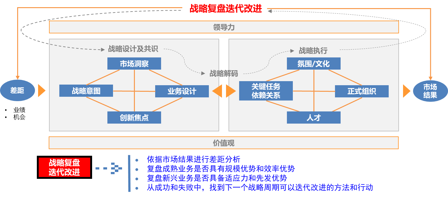 企业按照BLM完成一个周期的战略从规划到战略执行后,我们脑海里自然而然涌入三个问题:一是短期目标实现了吗?二是中期战略规划处于健康推进中吗?三是下一个周期的战略到执行,如何比这次做得更好?