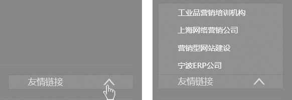 有些企业很注重形象,不愿意在自己网站的首页底部放上很多链接,特别是那些每天流量很高的网站,会担心流量从友链分流到别人的网站上,这时就要考虑暗链(暗恋)。图4-19是某网站底部友情链接的位置,左侧是正常显示的,右侧是点击后展开的所有友情链接。