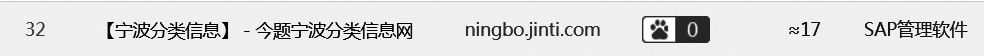 友链也要适度,企业网站首页最多做20~30条友情链接,再多就可以考虑自己重要的子页面与别人的子页面相互链接,简称为子链。子链不需要太多,一个页面有几个就行。一些大型门户网站的子页面会被设置成二级域名,来和企业的首页进行友链,虽然不公平,但考虑到大网站的大流量,更考虑到这些门户网站被百度收录的频率高(一般企业网站被百度收录的频率为几天甚至几个月一次,而大型门户网站的频率为几小时甚至几分钟一次),有利于企业网站新文章的收录,我们还是很乐意用首页交换其权重低的子页面。图4-20是刚才检测一家企业网站(www.tech-sonic.net)友链,排名在第32位的今题网宁波分站,尽管它的权重很低,只有0,完全没有门户网站的高权重,但对于企业网站的更新度贡献却很大。