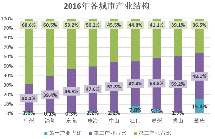 5.制造业优势与创新驱动促进城市群经济高速增长,珠三角9市二三产业占比较高,且以深圳为代表的创新驱动力较强;