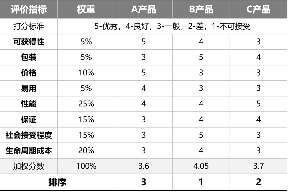 P-包装(Packaging):该要素描述了客户期望的设计质量、特性和外观等视觉特征。在这个维度上,企业需要考虑客户对外形、设计等的诉求,以及这些诉求对交付期望的权重。关于包装的考虑可以包括样式、模块性、集成性、结构、颜色、图形、工艺设计、文化属性等方面。