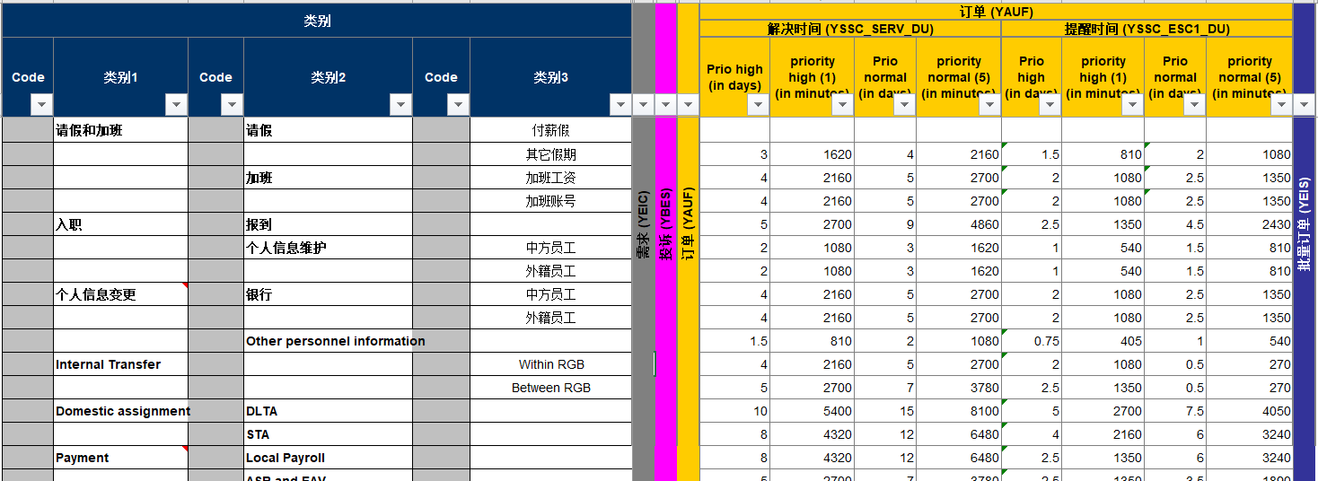 (3)工单管理,企业的SSC工作量比较大时,会就用工单管理系统。简单来说,就是BP在工单系统里下单,然后在系统里记录订单的活动过程,系统会有红、黄、绿三种颜色根据订单的Leadtime提醒订单的状态。红色表明订单未能按时完成,黄色是提醒订单要尽快完成,绿色是订单按时完成了。