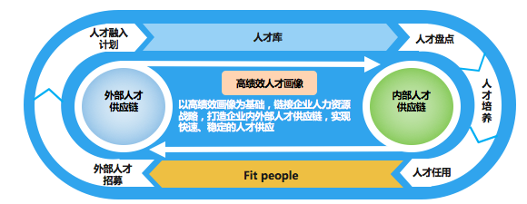 企业的内部人才供应链指的是企业最大化利用存量人才资源,实现人才供给,包括人才评价(测评、考核和反馈)、人才的选拔配置(竞聘、提拔、选拔和继任管理)和人才培养;企业的外部人才供应链指整合外部资源,以期实现外部资源的无时差供给,包括校园招聘、外部关键岗位招聘和外部人才地图的绘制等。