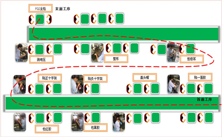 下面为一家锂电池工厂PACK包装线,其布局如图5-11所示。