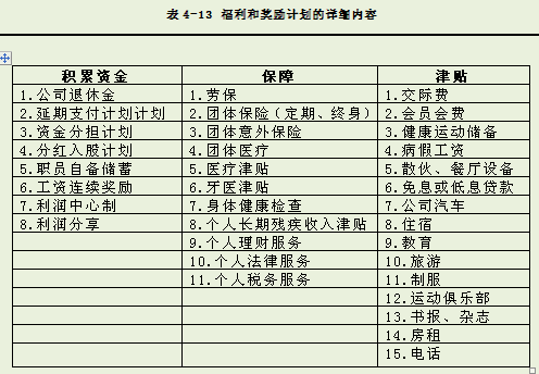 一般上可能获得的福利和奖励计划如表4-12所示: