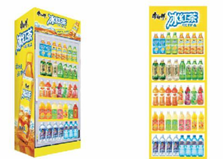 ③ 陈列方式:同品牌垂直陈列,从上到下,由轻到重,同包装水平陈列;遵循先进先出原则;新产品、新包装产品应陈列在冰箱的最佳位置,即靠近冰箱把手的位置,配合新产品的推广。