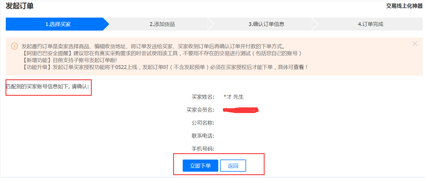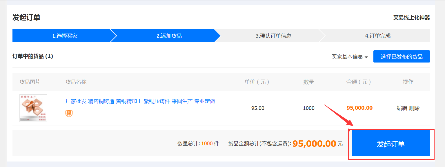 第五种营销工具是:发起订单。这个针对的人群是嫌线上下单麻烦的客户、不会在线上下单的客户、多次同类交易的老客户、到现场自提的高额老客户。需要说明一下,发起订单不适合新客户,因为并不知道这个客户的底细,所以发起订单针对新客户有风险。但对于交易过的客户用发起订单可以省去很多麻烦事。