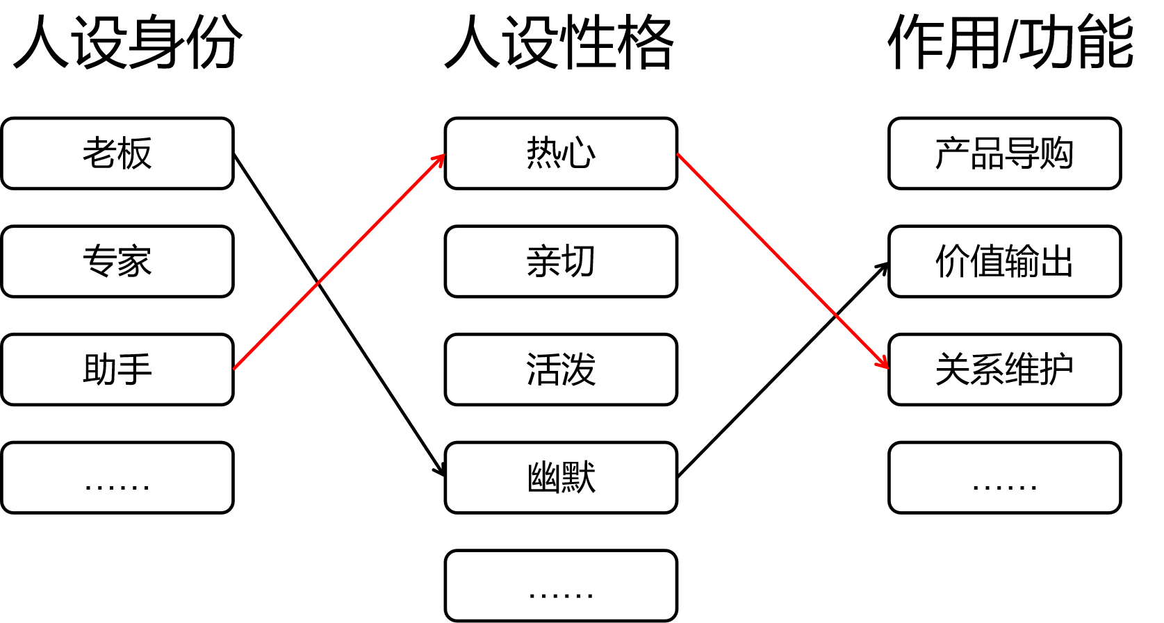 我们可以在纸上分别将社群人设身份、人设性格、人设作用/功能进行简单的罗列,如图9-2所示。