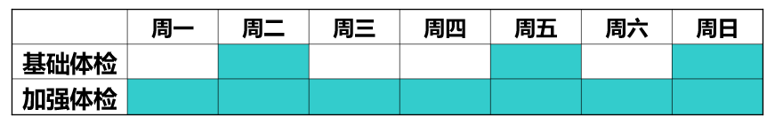 如果三天是低配的“基础体检”,那么七天就是高配的“加强体检”。如表2-1所示。