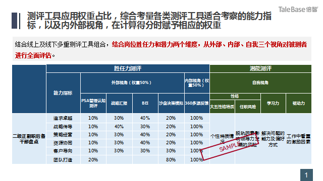 评估现状 | 一方面是测评工具所评估的维度与人才标准一致,避免对结果产生怀疑,影响标准落地;另一方面要在评估和校准中统一使用,加深评估人员对人才标准的理解 |