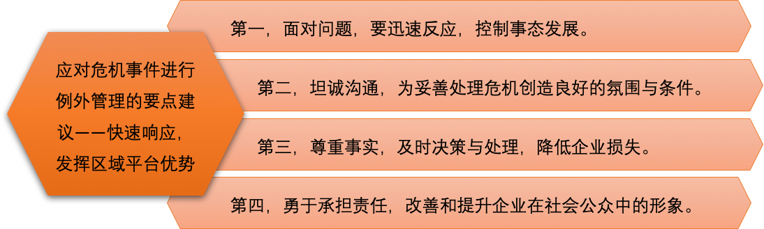 (3)应对危机事件进行例外管理的要点建议——快速响应,发挥区域平台优势。