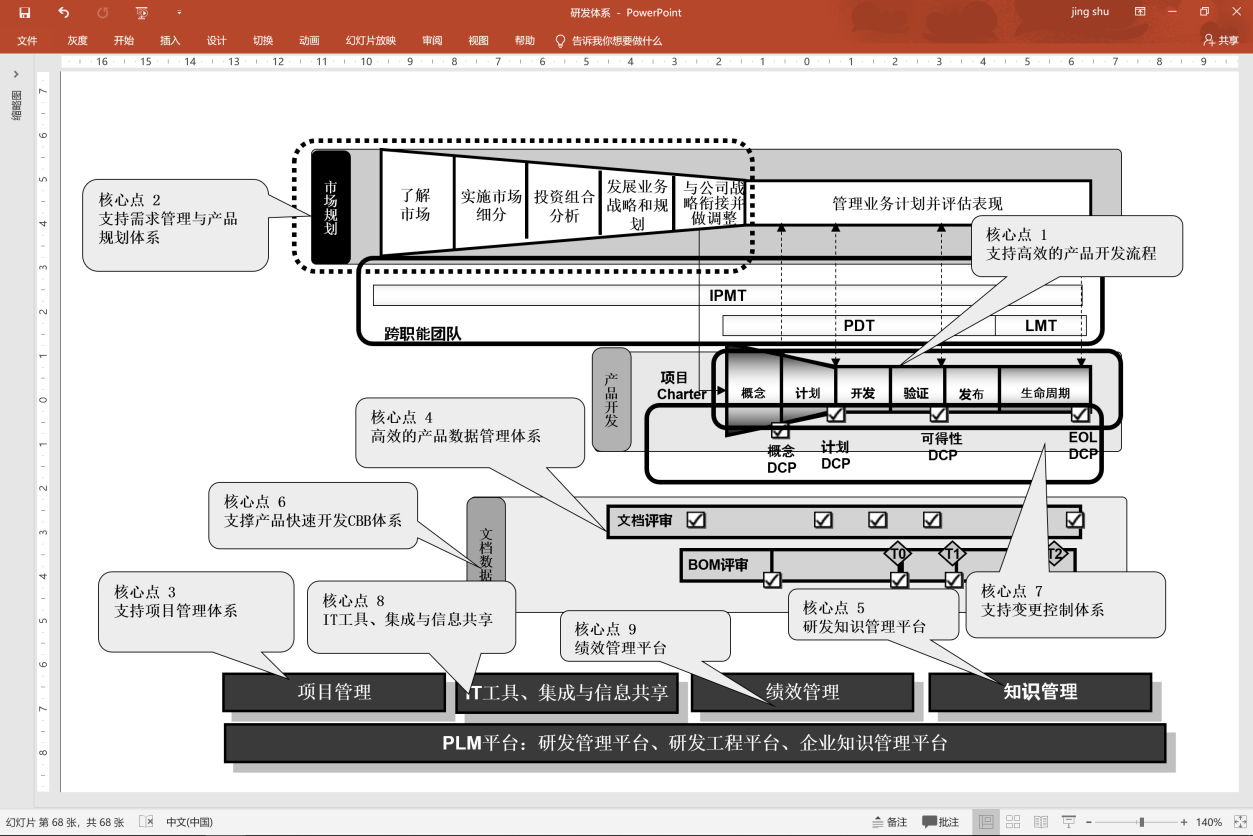 IPD是研发管理思想,PLM是研发管理平台,要构建与IPD管理一致的PLM系统,PLM必须从思想、流程、管理工具、方法、模板等方面与IPD进行多层次融合,两者有效融合是研发创新和效率提升的核心。
