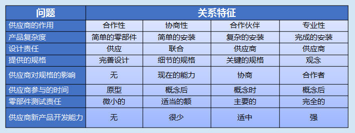 供应商的合作层次: