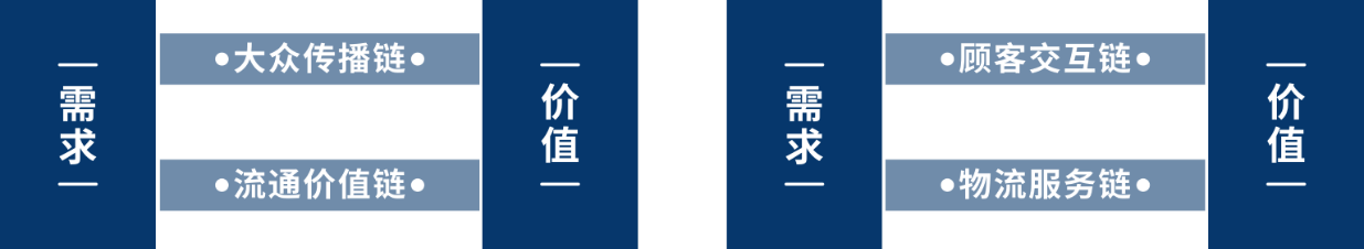 立体连接意味着传播链和流通链产生了融合。原先的大众传播链和流通价值链交融成为顾客交互链;而流通价值链中的物流要素独立出来成为物流服务链。如图1-5所示。