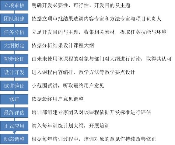 尽管我们有课程开发质量衡量标准,但是如果没有流程予以保证,那么很有可能开发出来的大多数课程到交付时都难以达到标准。我们开发课程一般要经过以下基本流程,如图5-14所示。