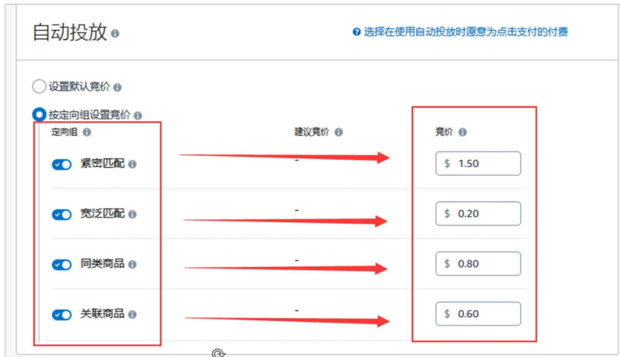 在亚马逊平台上,当我们着手创建商品推广广告中的自动广告时,就会进入相应的设置页面。这里面的自动广告存在着紧密匹配、宽泛匹配、同类商品、关联商品这四种各具特色的匹配模式,每一种模式都对新品广告的投放有着不同的影响。