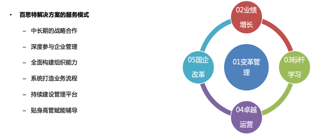 百思特咨询基于对企业发展阶段、行业特性和标杆的持续研究,形成了企业端到端、全价值链的解决方案咨询服务。