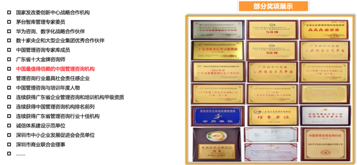荣获中国管理咨询委员会咨询机构50强、广东省管理咨询行业十佳机构;