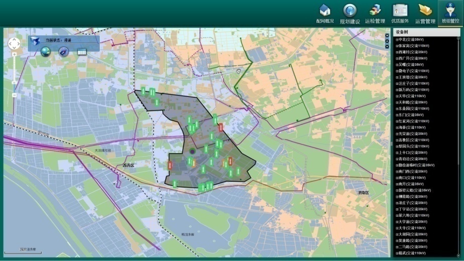 城西公司自2015年起立足班组管理模式创新提升运检精益化管理水平,打破班组按专业管理模式,试点开展高低压运检一体化管理模式,解决配电运维人员配置紧缺与设备点多、面广之间的矛盾;2016年进一步深化网格管理模式,探索基于台区的运检一体化管理,全面提升台区的精益化管理水平和优质服务水平。下图所示为GIS上配电运检6班所对应的运维网格图。