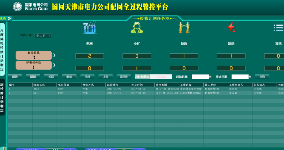 该平台是在原有的配网全过程管理平台基础上搭建的,从计划、指标、诊断、数据、决策等五个方面,为班组日常业务开展提供数据与软件支撑。