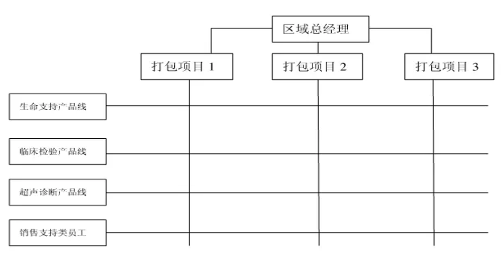 设立区域总经理的目的主要是统筹区域业务一体化的建设,如统筹管理大的医院打包项目,实现人力资源调配和利用的最大化收益。整个团队由直线式变为矩阵式,任何一个销售人员都处在横向和纵向的交叉点上,同时接受产品线领导和区域分公司总经理的督导。区域分公司总经理可以以项目为轴心,统筹管理整个打包项目的人员调配,抽调优势兵力集中跟进,从而实现团队项目运作效率的最大化。在这种以区域“主战”为主的矩阵架构下,区域总经理负责三条产线的全部区域业绩责任,同时对下属的产线经理有较大比重的用人和考核权限,各产品线依据终端的特点、容量和潜力进行专业队伍的配置。同时用户服务独立于营销的同时,在区域结构上设置区域经理,对代理商处的用户服务人员进行激励和约束,同时每年进行培训和考核,用户服务每年要评估,产线业务人员可以代表客户投诉,用户服务人员过错轻的将扣减返利,重的则会取消其用户服务资格。