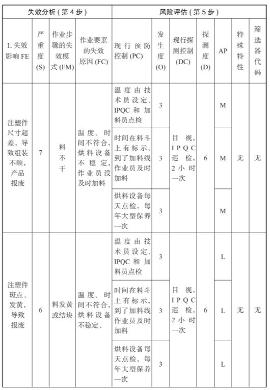 比如料有杂质,导致注塑件有杂质,可能导致50%左右的产品报废,其他产品要维修,评分7分。料没有烘干,导致产品结构异常、尺寸不良,100%报废,评8分。严重度评分一定要先把失效分析全部做完才可评分。