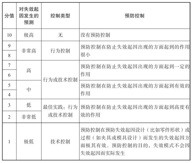 表2-7 PFMEA发生度评分标准