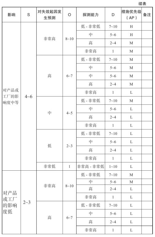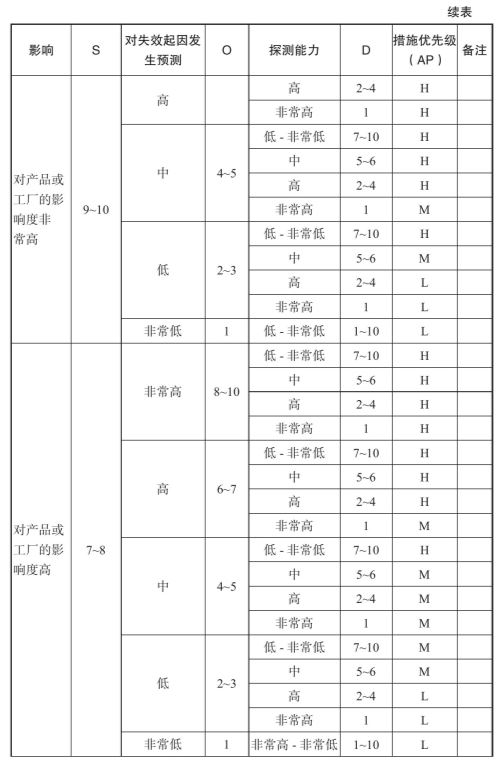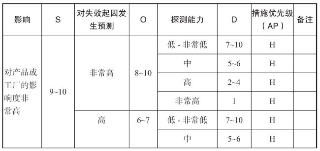 表2-9 AP风险矩阵表(FMEA)