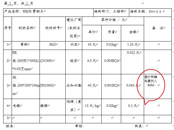 根据设计目标和可靠性目标、质量目标,就要策划初始用哪些材料,有些直接在市场上选用不同标准件即可,如电容、电阻等;有些要供应商配合打样,如塑胶结构件等,但要先把初始材料定出来,方便采购部安排供应商立即送样。参见表1-2-2。