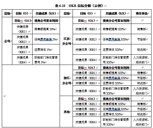 表6-10 OKR目标分解(示例)