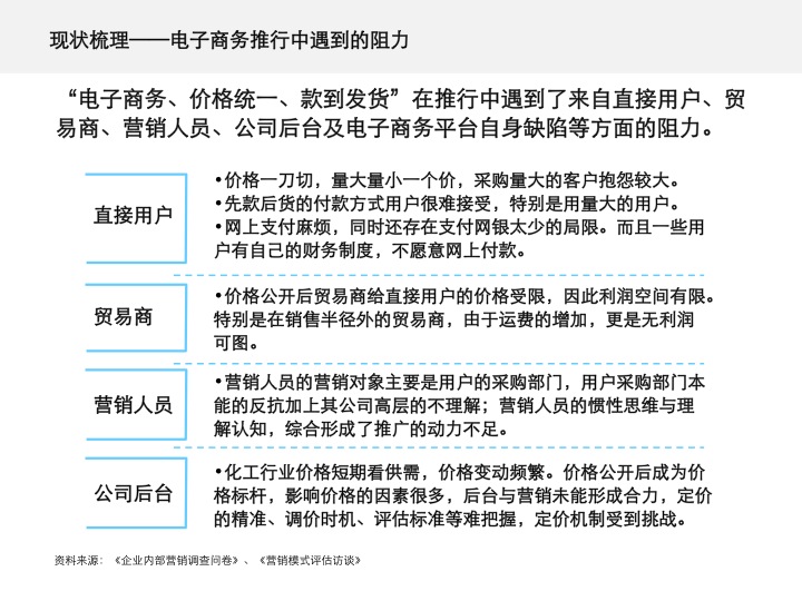 化工原料是标准产品,采取电子商务的形式,在理论上是可行的,但需要公司营销系统与后台系统做系统的规划与整合。