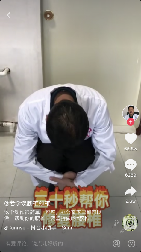 很多保健品、医疗号,经常通过这种方式吸引精准人群。什么头疼病、颈椎病、更年期之类的,有的组建抖音矩阵,每个账号一种疾病,针对一类人群,只要内容足够专业,就能大量吸引精准粉丝。随后在微信及社群里,转化为一个实物产品,或者一套易操作教程课件进行营销变现。