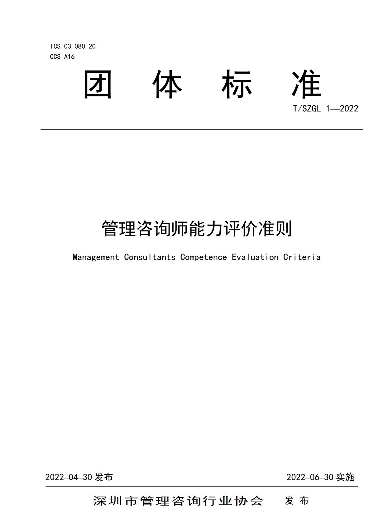一、T/SZGL 1-2022 管理咨询师能力评价准则