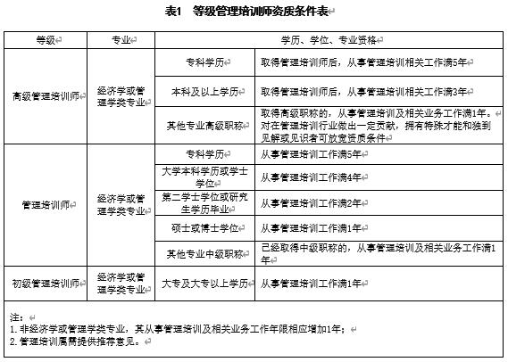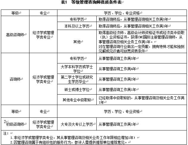 凡具备表1的条件者,均可申报相应等级管理咨询师。