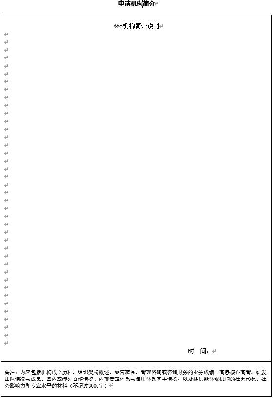 评价机构应定期向社会发布参评管理咨询师的自然人管理咨询等级能力评价工作通知,并受理参评管理咨询师自然人的参评申请。申请表可由评价机构适时发布,其格式应包括但不限于以下内容: