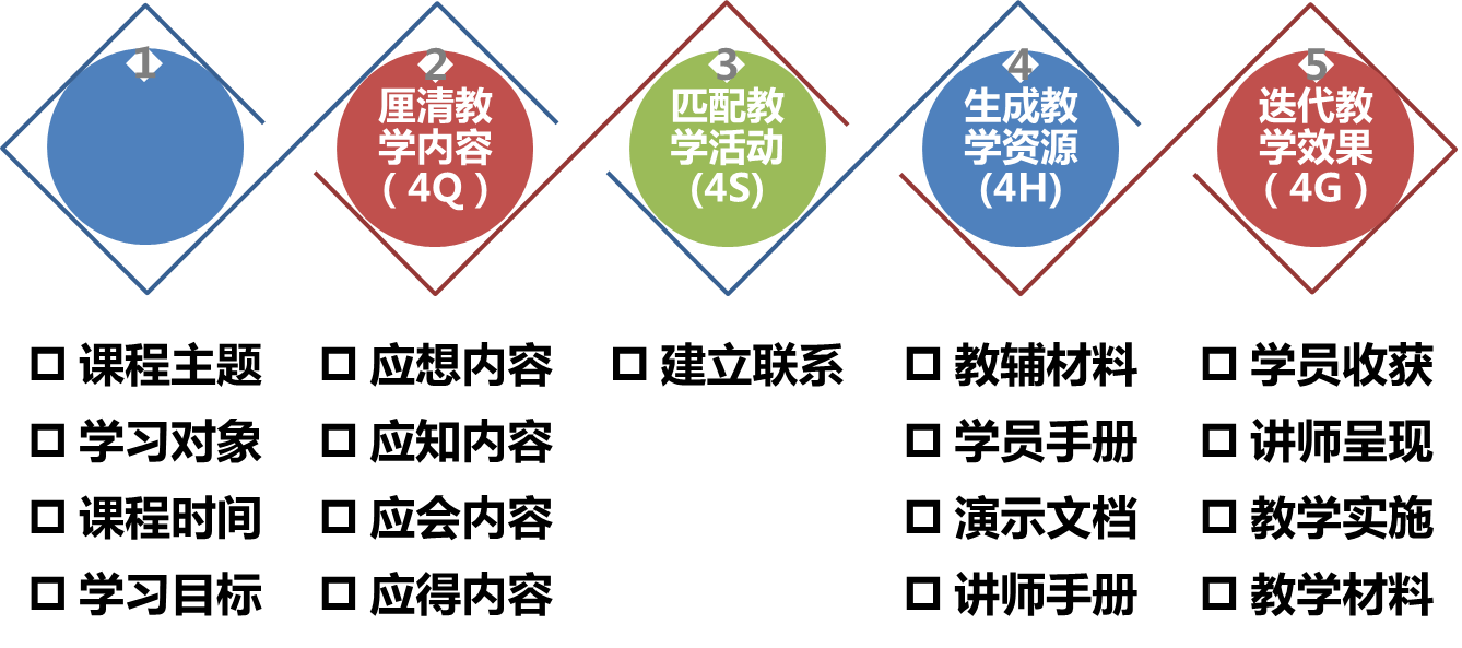 第一步,将五四课程设计开发模型的部分内容空出来,可以空标题,也可以空标题下的内容,空出来的内容最好是非常核心的内容,千万不要全空出来,目的不在填空,而在于填空所引发学员思考和互动。