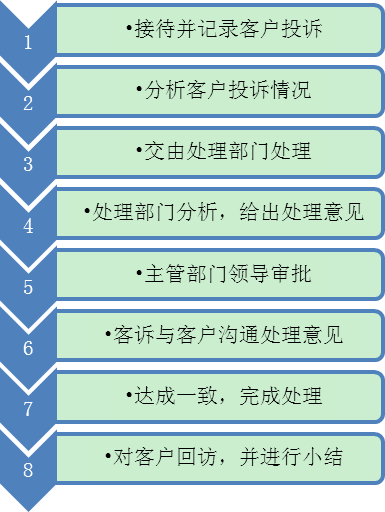 有如此详细的方法,大家应该懂得如何去做了。但是,我对此不敢苟同。并不是反对企业制定这样的流程,有流程总比没有流程好,有方法总比没有方法任由客诉人员无原则地乱创好。制定一些方法类流程是十分必要的,因为它可以将智慧进行集合,尔后再将智慧传递,能够使“笨人”借助这些工具变成聪明人。不敢苟同想表达的是不能以偏概全,使管理者出现错觉,认为只要有了这些成套的东西,客诉工作就必然会做好。