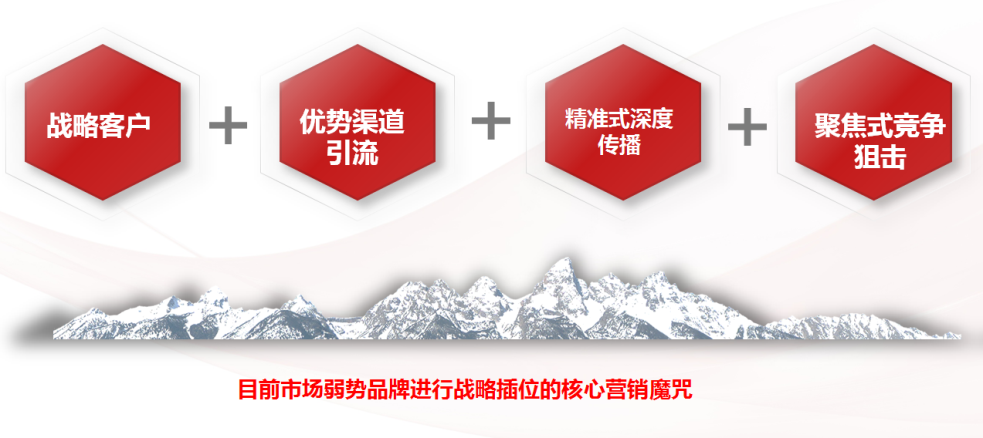 聚焦与插位,是弱势品牌最大着力点。聚焦是集中企业的优势资源在最容易发力的点的进行深度切入,打开缺口后再进行战略延伸。插位,是从品牌定位、市场定位、消费群体定位寻找最有利的机会缝隙进行切入,不按常规的顺序进行慢慢排位,从而导致丧失市场机会。