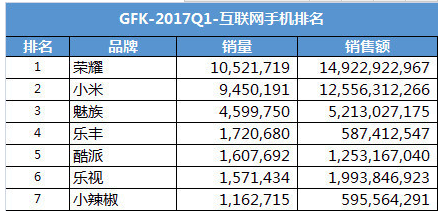 表7-12 互联网手机排名