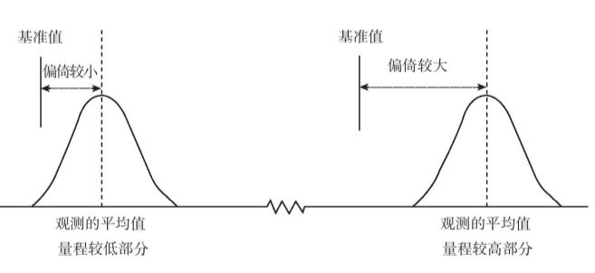 线性变差即偏倚值,是用来测量基准值存在的线性关系,基准值越大,偏倚越大。