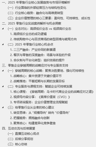 2025 零售行业洞察与穿越周期实战分享 —— 陈继展老师直播核心内容实录