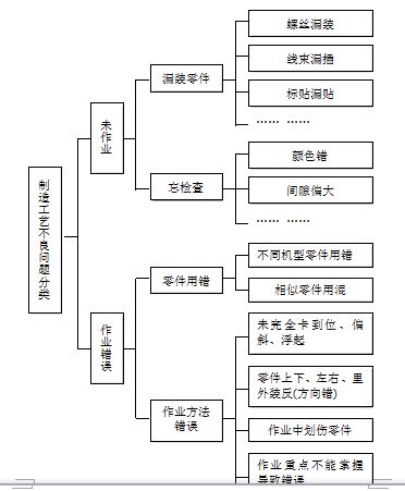 将问题按发生性质分类,例如某电视机产品对制造工艺收集的问题进行以下分类(图5-15)。